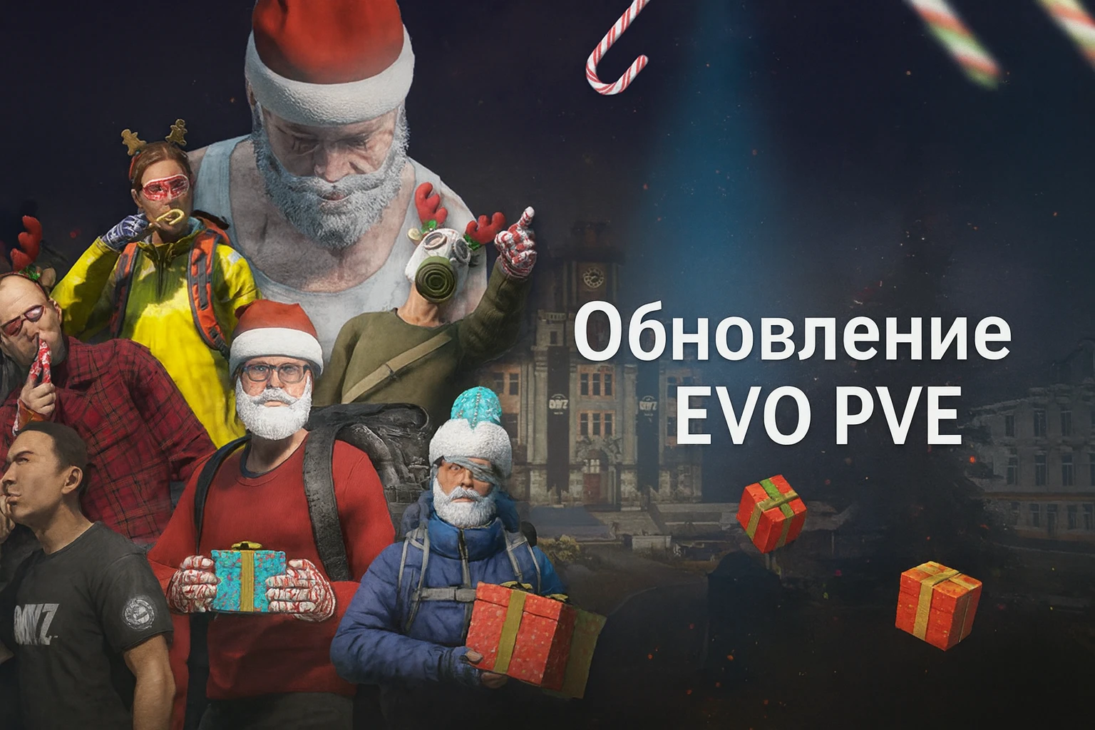 - летающий санта, который скидывает подарки по всей карте Чернорусси с рандомный лутам, но будь осторожен может быть сброшен опасный груз;