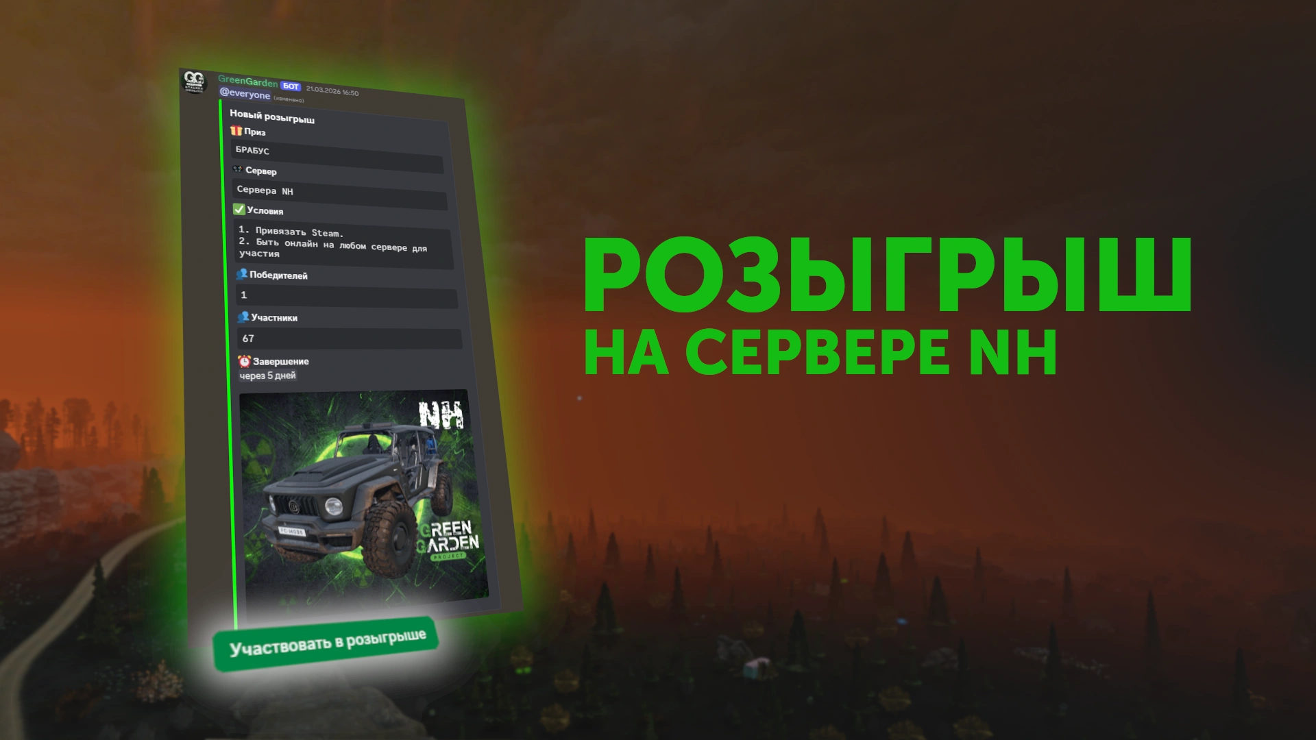 Сталкеры, одному из вас повезёт получить боевую бричку абсолютно бесплатно — участвовать здесь: https://discord.gg/65RZzWsBwR