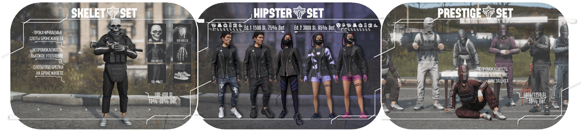 • Полная доработка сетов экипировки — исправлены промокаемость, теплоизоляция, химзащита и описания. Устранены двойные названия.