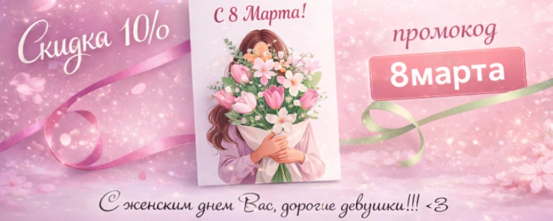 🌸 В честь праздника мы подготовили для вас подарок – используйте промокод "8марта" на нашем сайте и получите 200 рублей на свой счет!